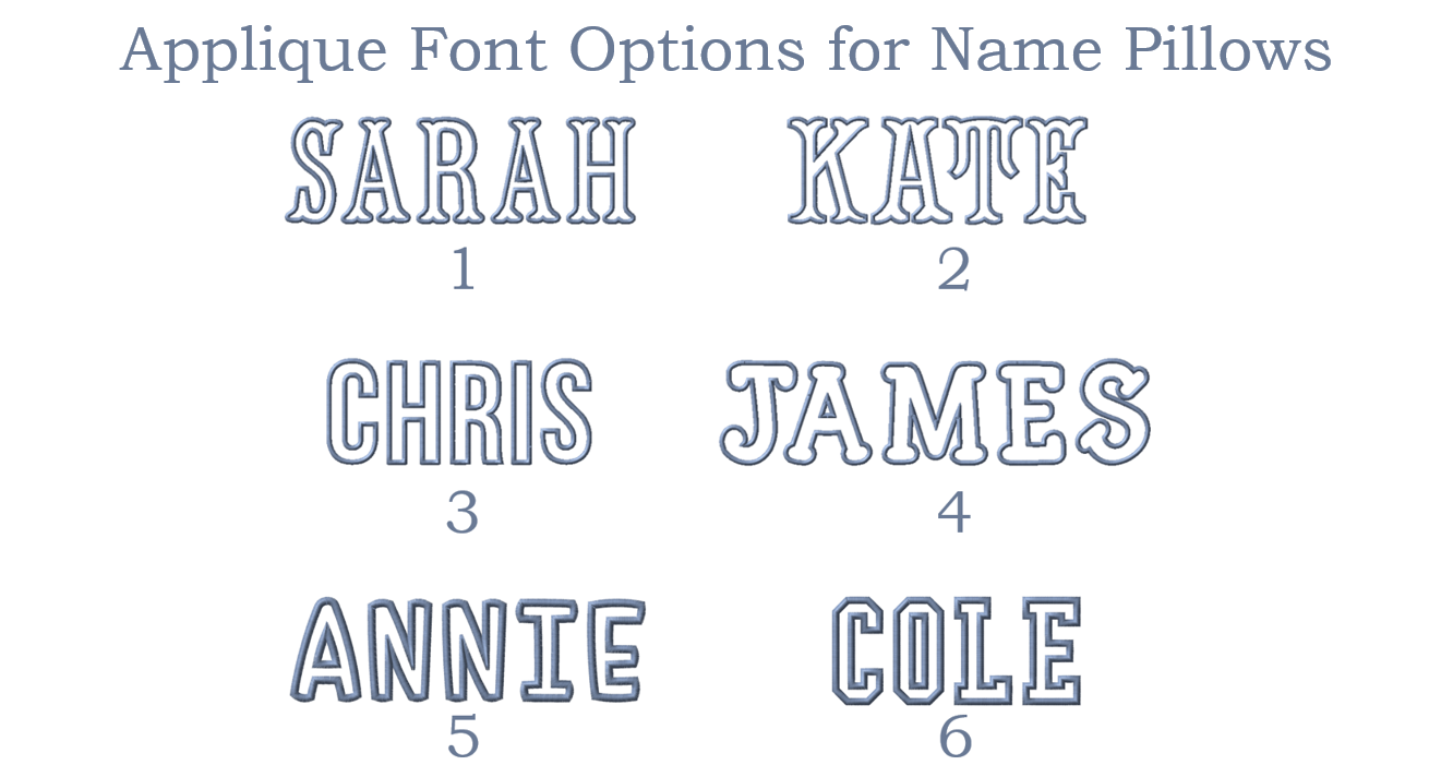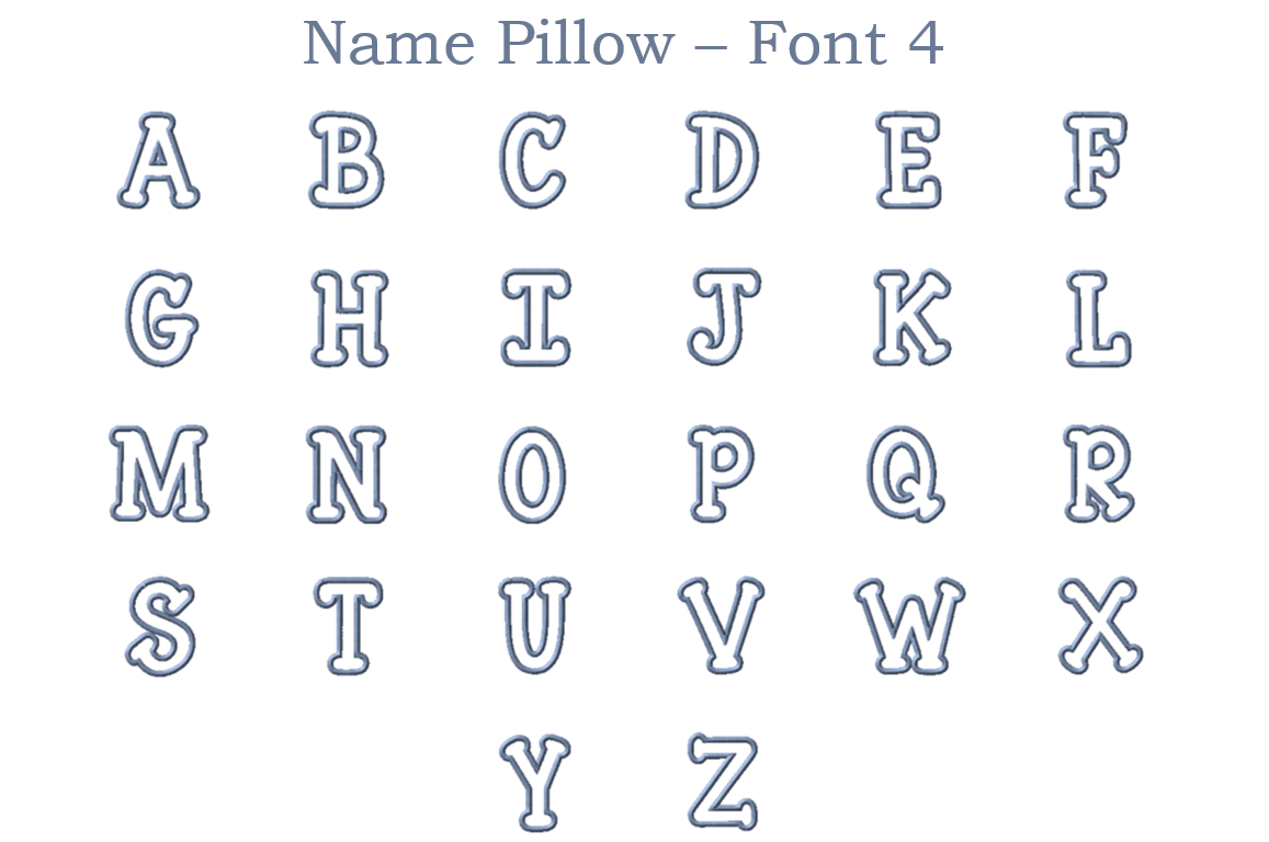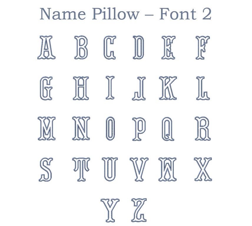 - Full alphabets for each font can be viewed under the FONTS tab or click Name Pillow Applique Fonts