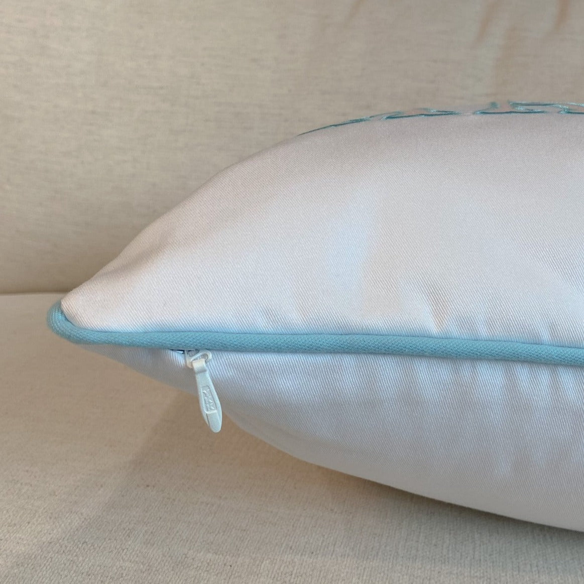 - Each pillow is cut, sewn, and embroidered by me, in my studio