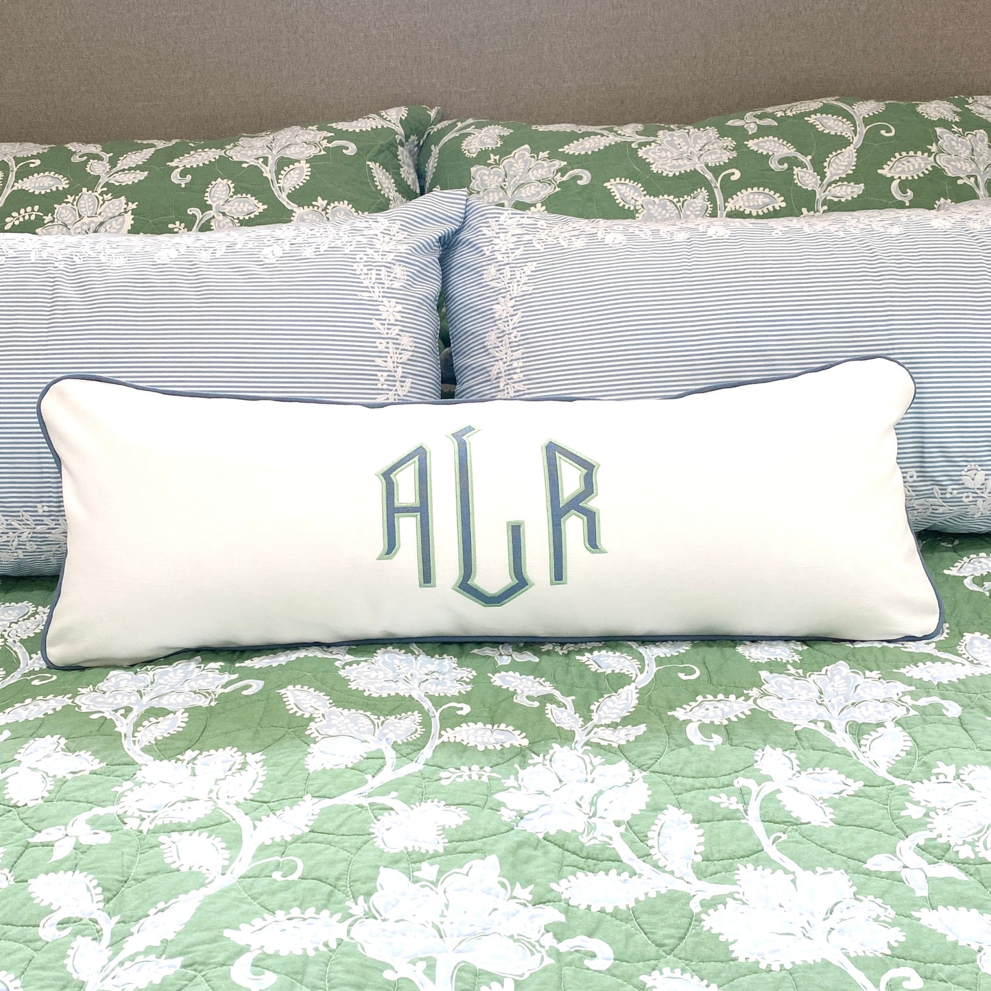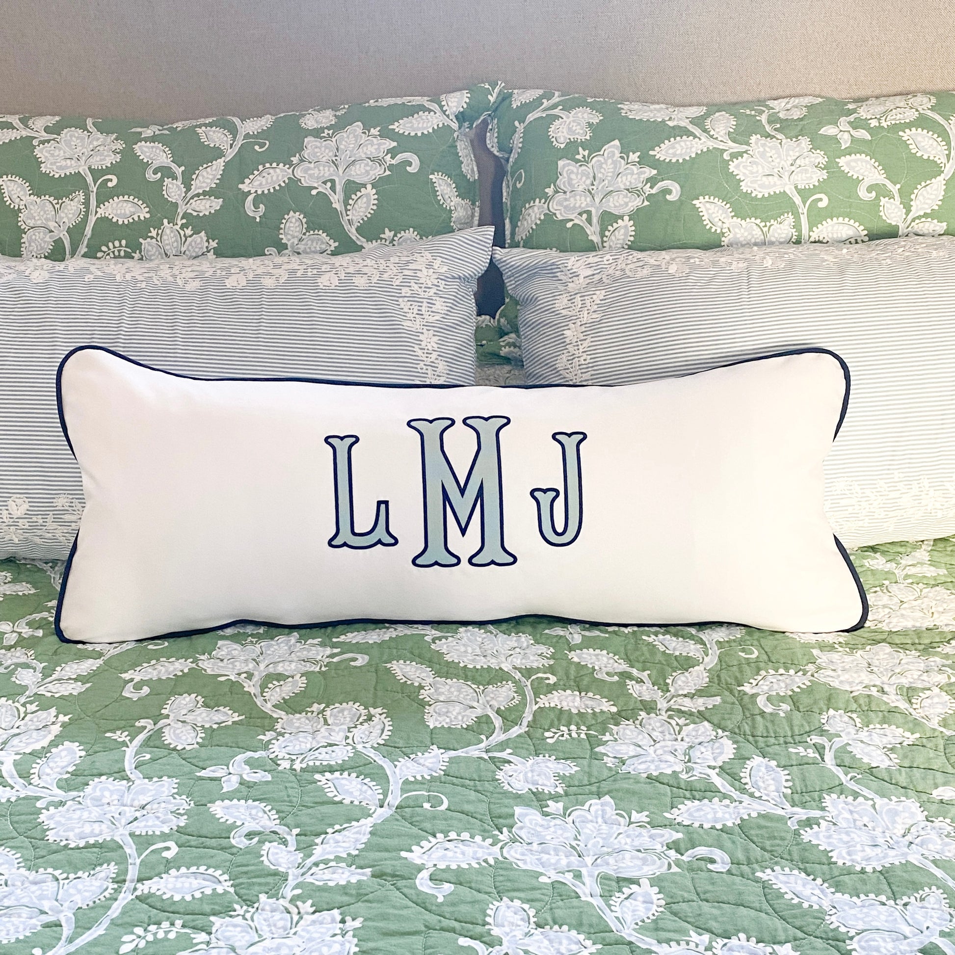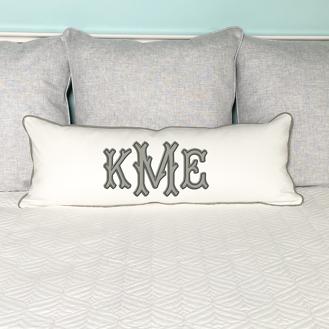 APPLIQUE MONOGRAM LUMBAR PILLOW 14" x 35"