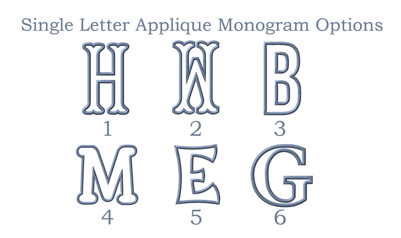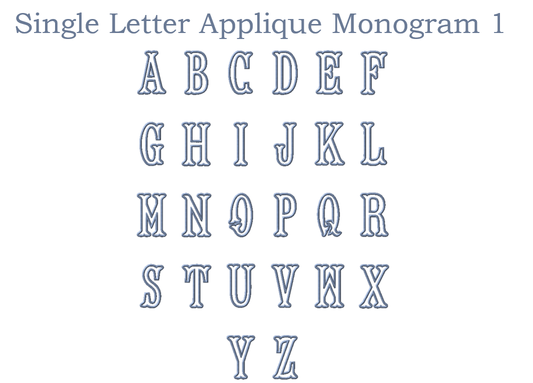 - Full alphabets for each font can be viewed under the FONTS tab - Single Letter Monogram Applique